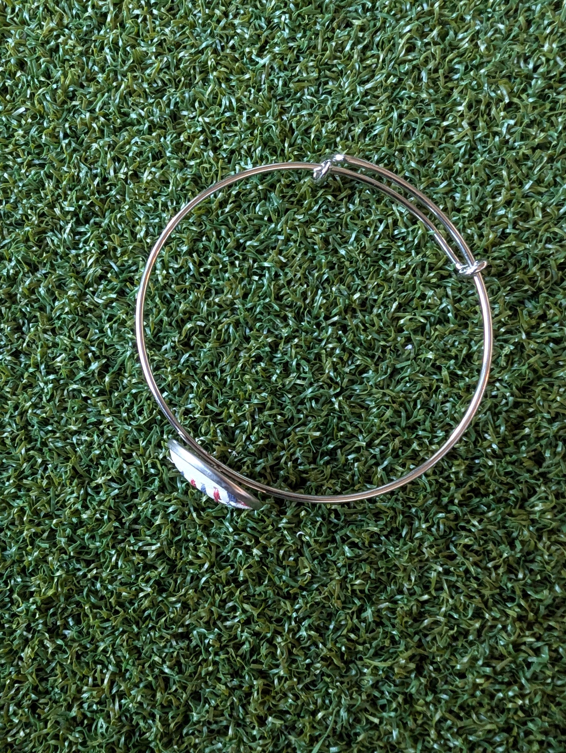 Baseball Double Loop Wire Bangle Bracelet- Blue/Red Stitches