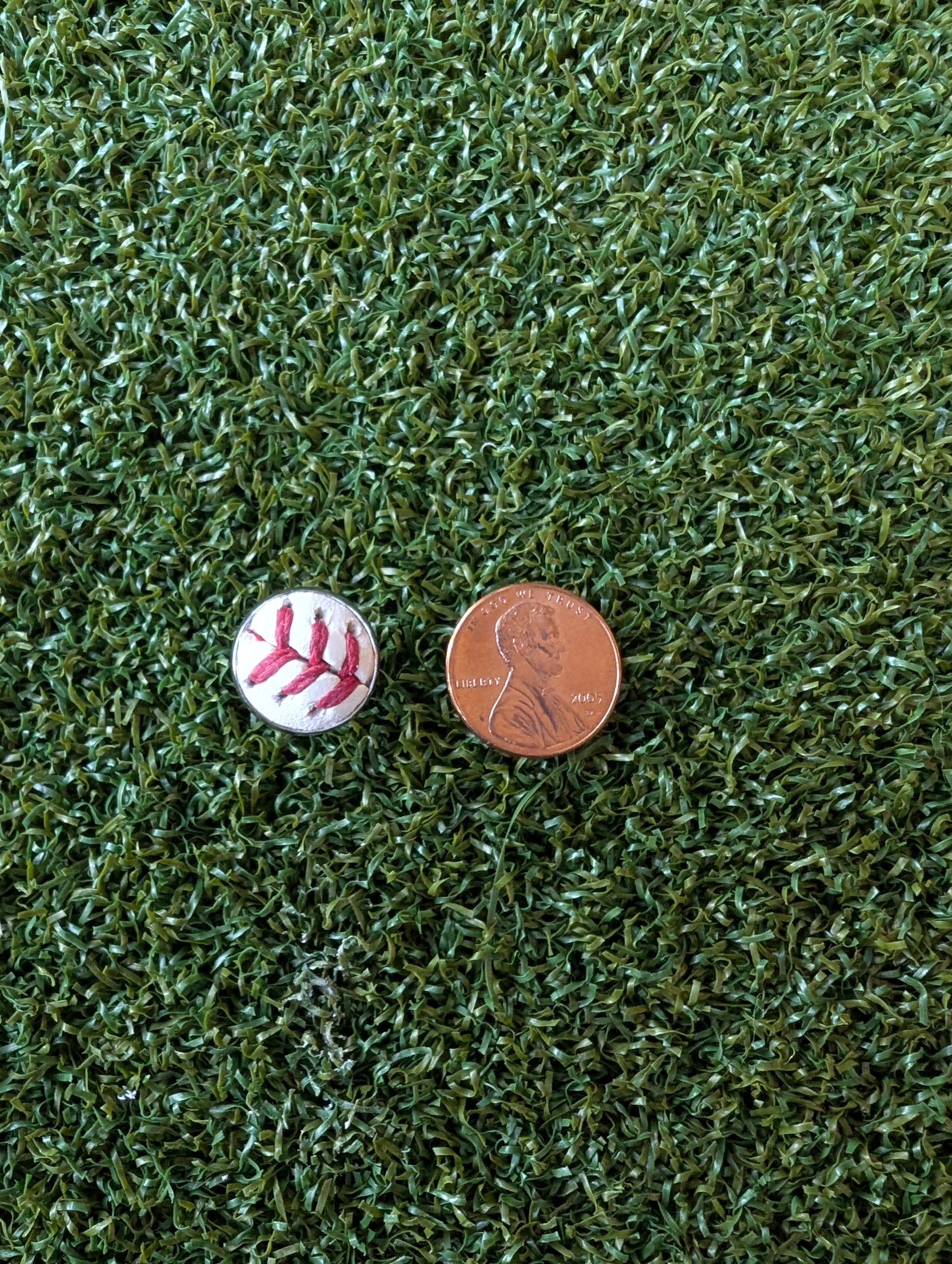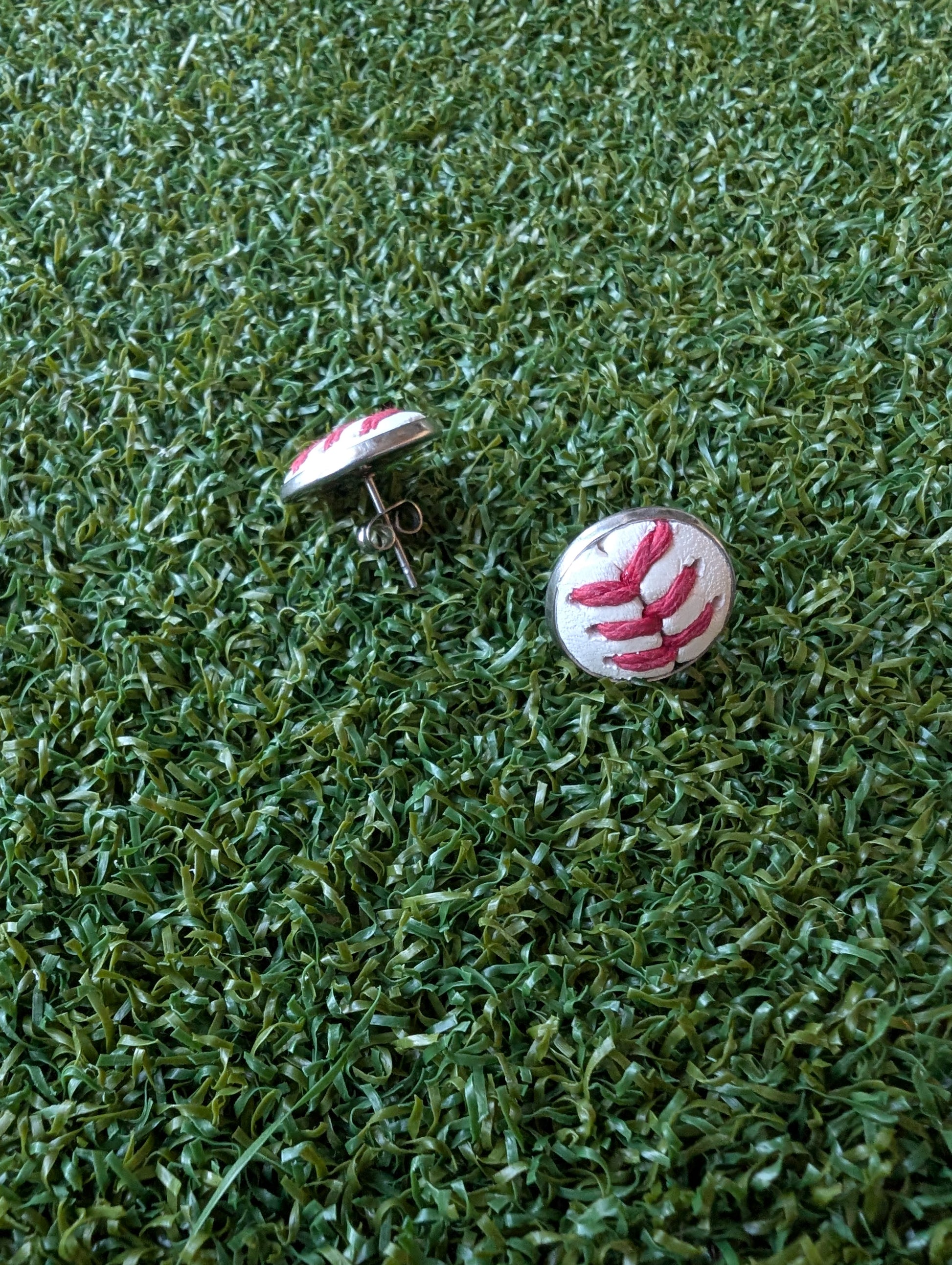 These earrings are perfect for any baseball fan! They are a smaller option, measuring 9/16” in diameter, that still makes it easy for anyone to see that you are a baseball fan. These earrings are made from Rawlings Official Major League Baseballs. Each features an open front side so you can feel the leather, and a solid metal back. These earrings are extremely light weight, making them comfortable enough to wear through the whole day, to the game, and late into the night!