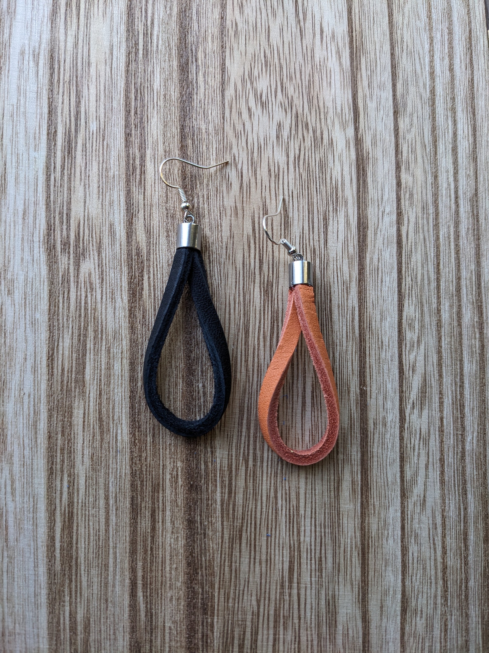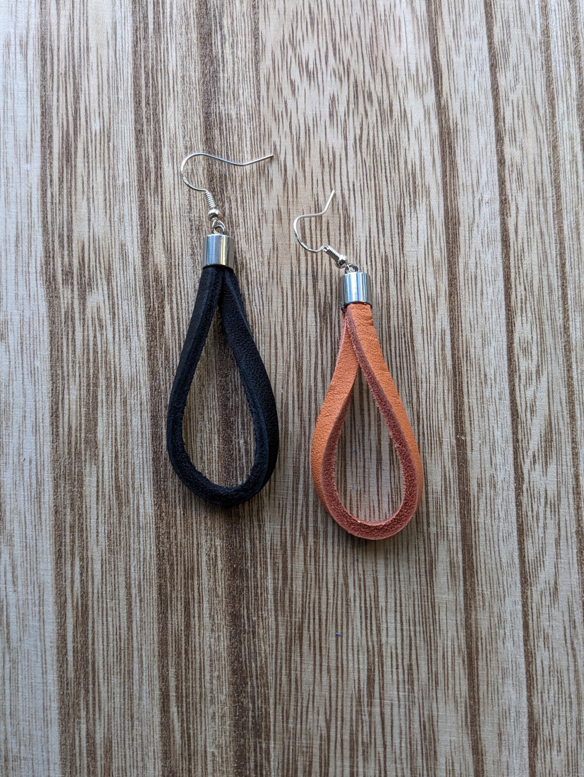 Support your team in these orange and black leather earrings! They are made with 3/16" wide baseball glove lace and measure about 3" in length. The fish hook style ear wires are sterling silver.