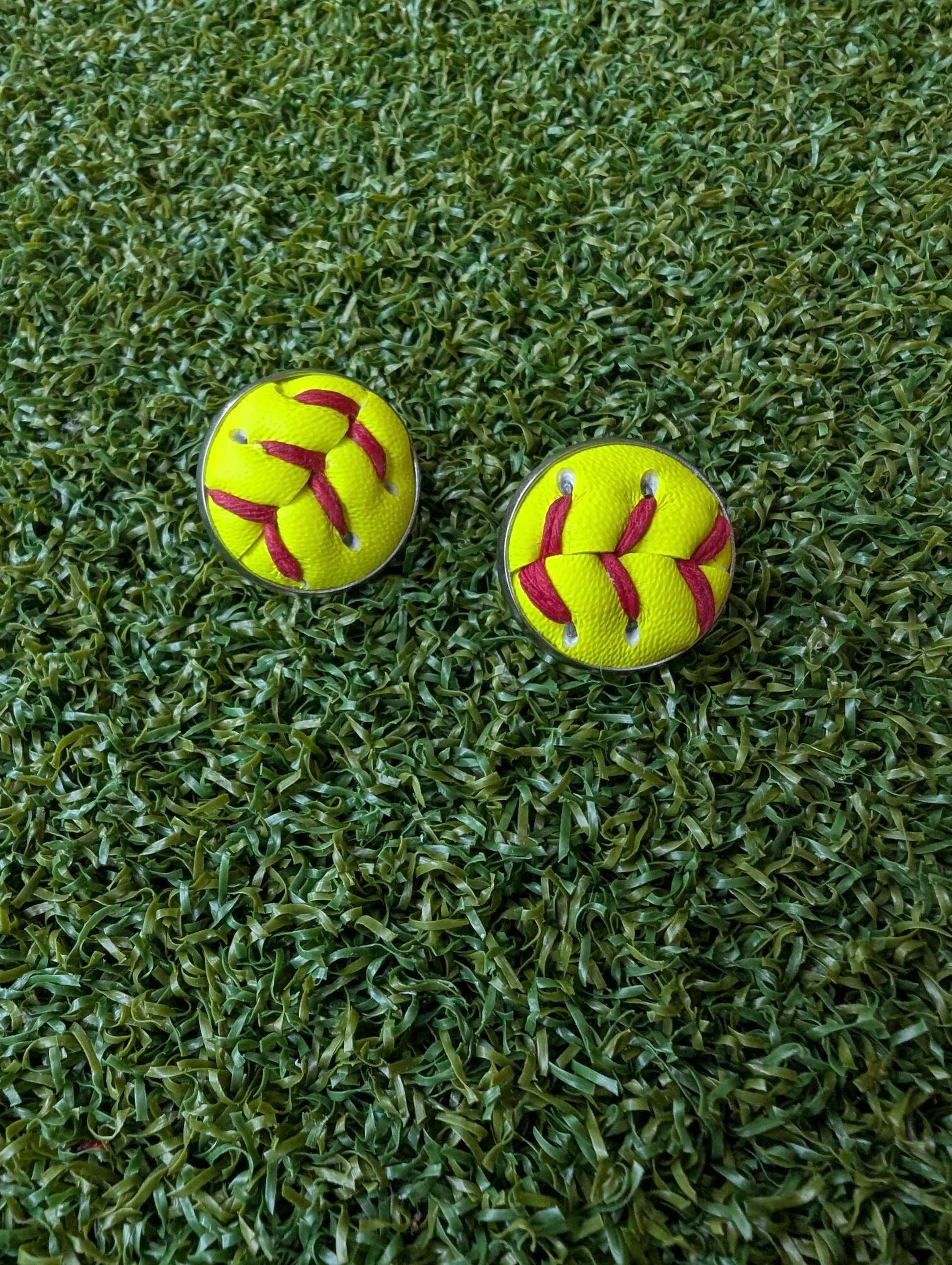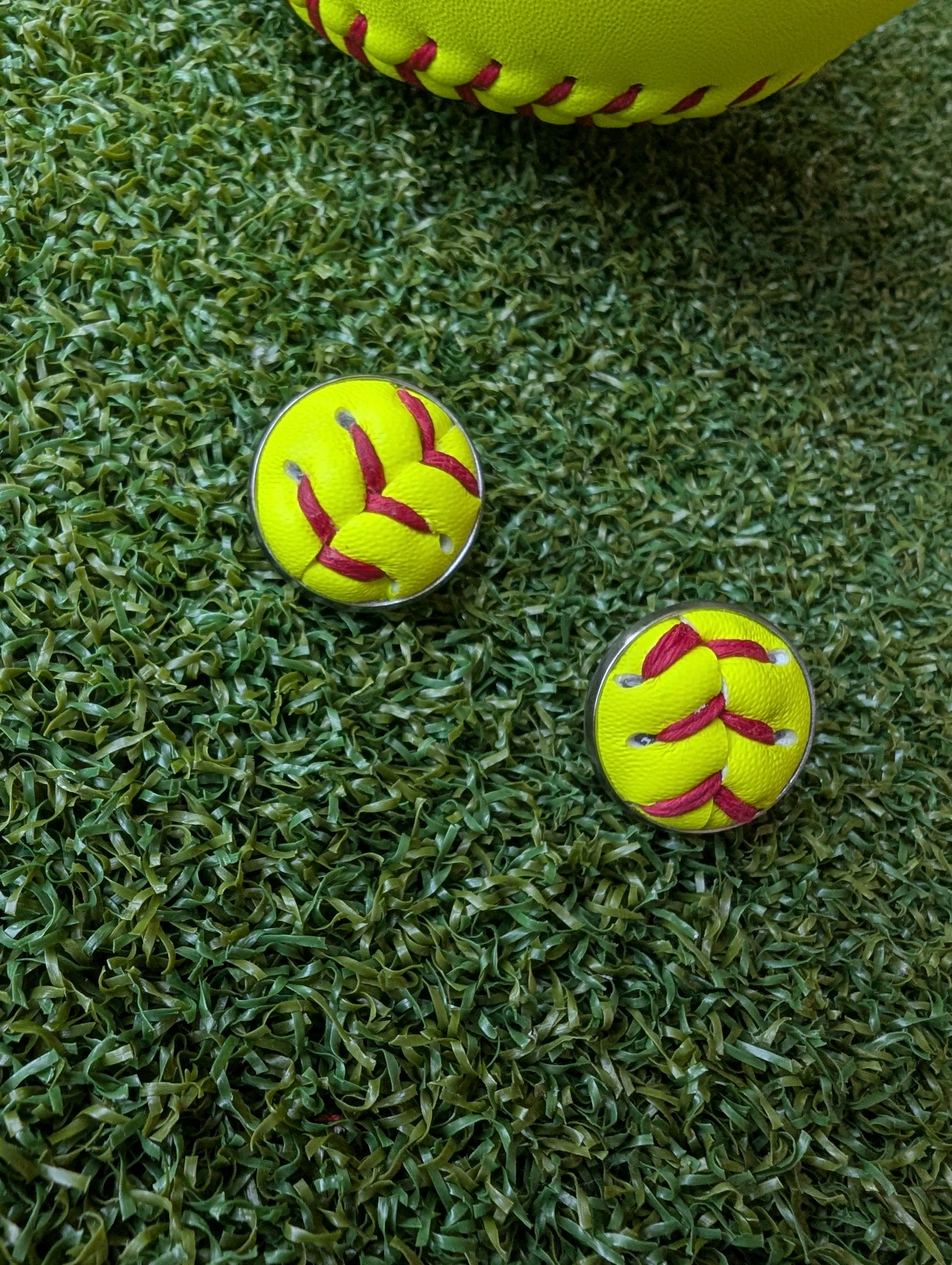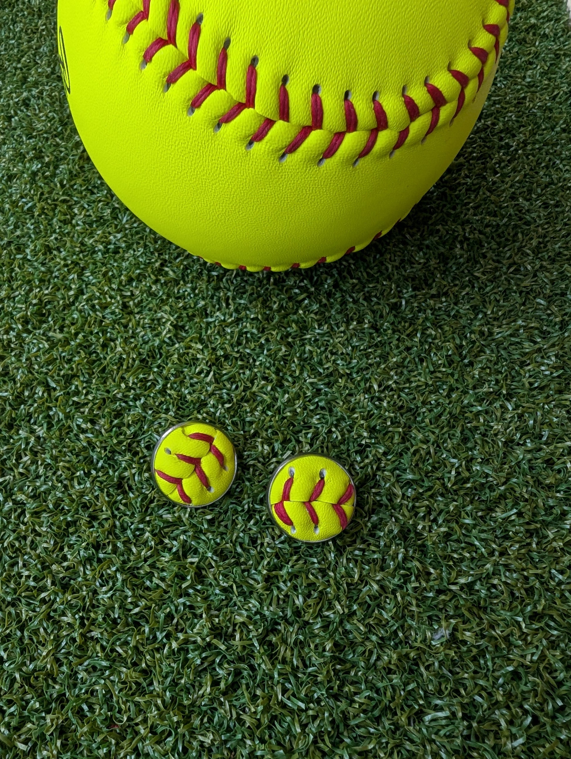 These 3/4” round earrings are made with real softballs. Each features an open front side so you can feel the stitches, and a solid metal back. These earrings are extremely light weight, making them comfortable enough to wear through the whole day, to the game, and late into the night!